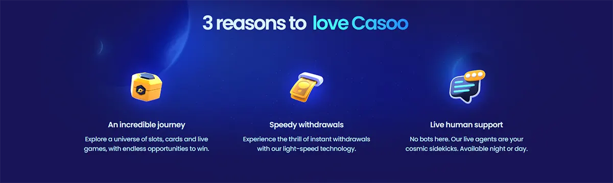 We launched Casoo Casino in 2019 with a cosmic-themed gaming environment. Our space-suited mascot guides players through a universe of gaming options spanning slots, table games, and live casino experiences.