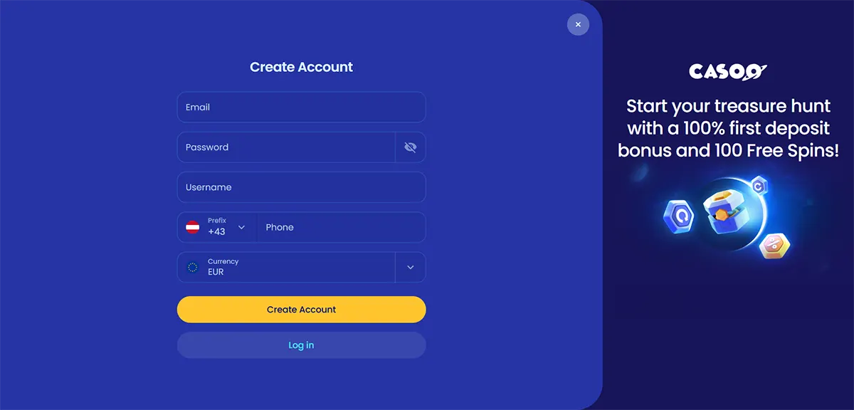 To join Casoo Casino, visit our official website and click the "Register" button in the top right corner. Our registration form requires only essential information:
